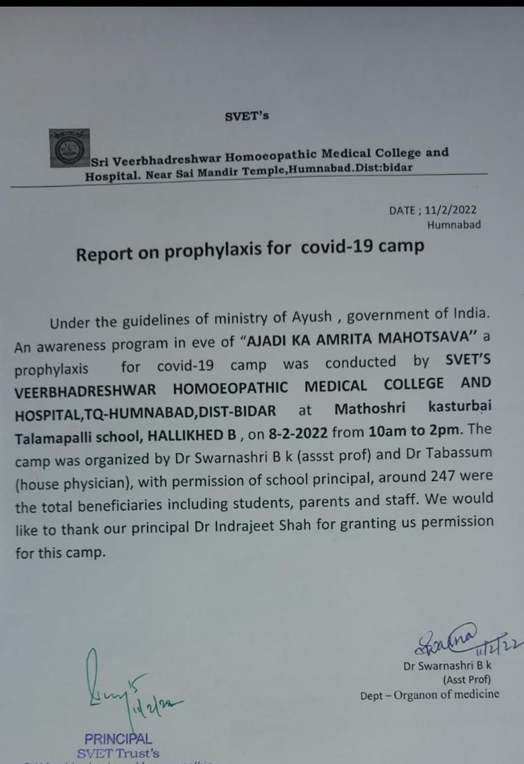 Ajadi ka amrit mahotsav ayush Health Camp Report,