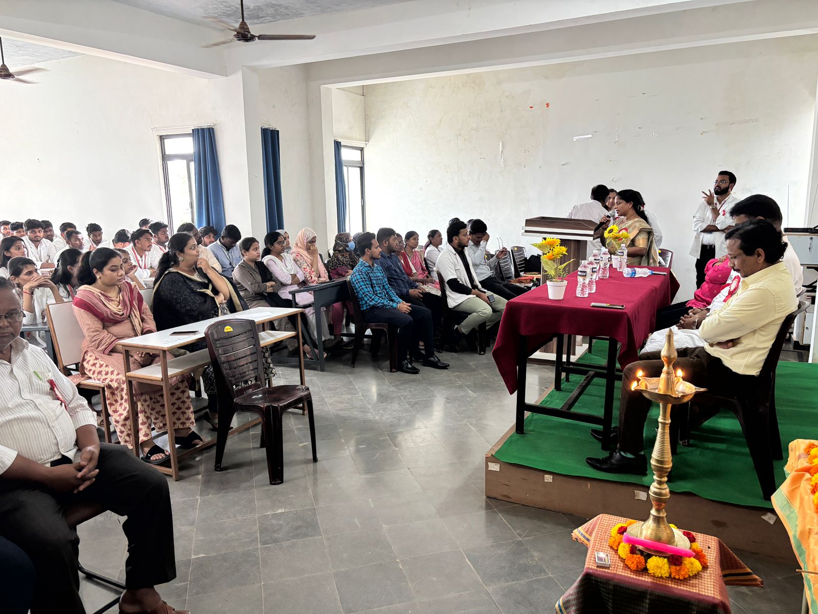 The event was inaugurated with a traditional lamp-lighting ceremony by distinguished dignitaries including: Dr. Anil Chintamani – District Tuberculosis Programme Officer, Bidar, Dr. Nagnath Hulsure – Chief Medical Officer, General Hospital, Humnabad, Dr. Mujtaba – Medical Officer, Government Hospital, Humnabad, Dr. Indrajeet P. Shah – Principal, SVHMCH, Dr. Nadgouda Director, Dr. Brijesh – Principal, Rajarajeshwari Ayurvedic Medical College & Hospital, Mr. Sanjay Guttedar – Office Superintendent, SVHMCH